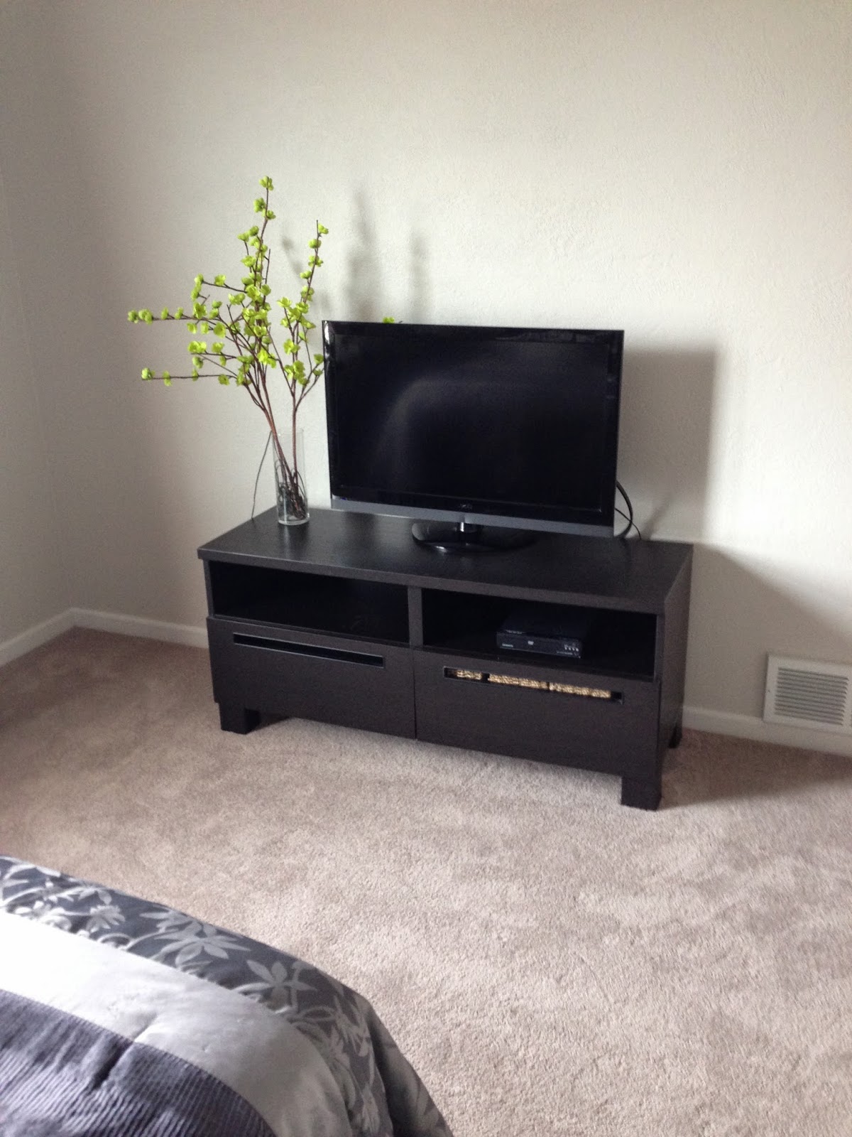 we moved the TV that was in our bedroom into this room and added a different TV stand than was in our old house.